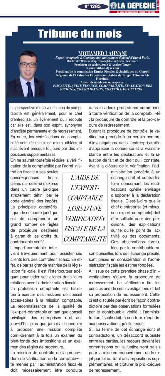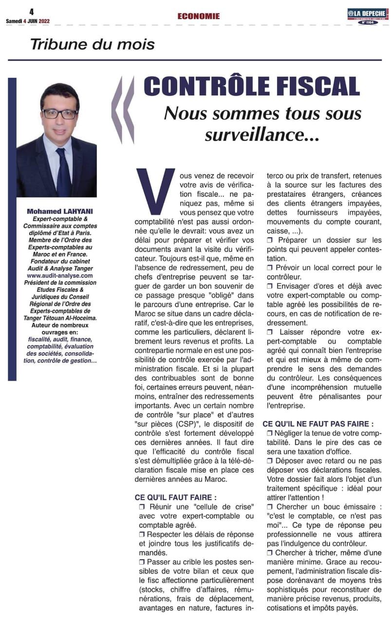 | 29/10/2022 | LA DEPECHE : CONTROLE FISCAL AU MAROC. Ce qu’il faut savoir |