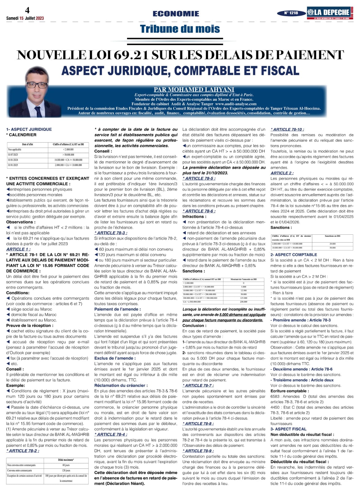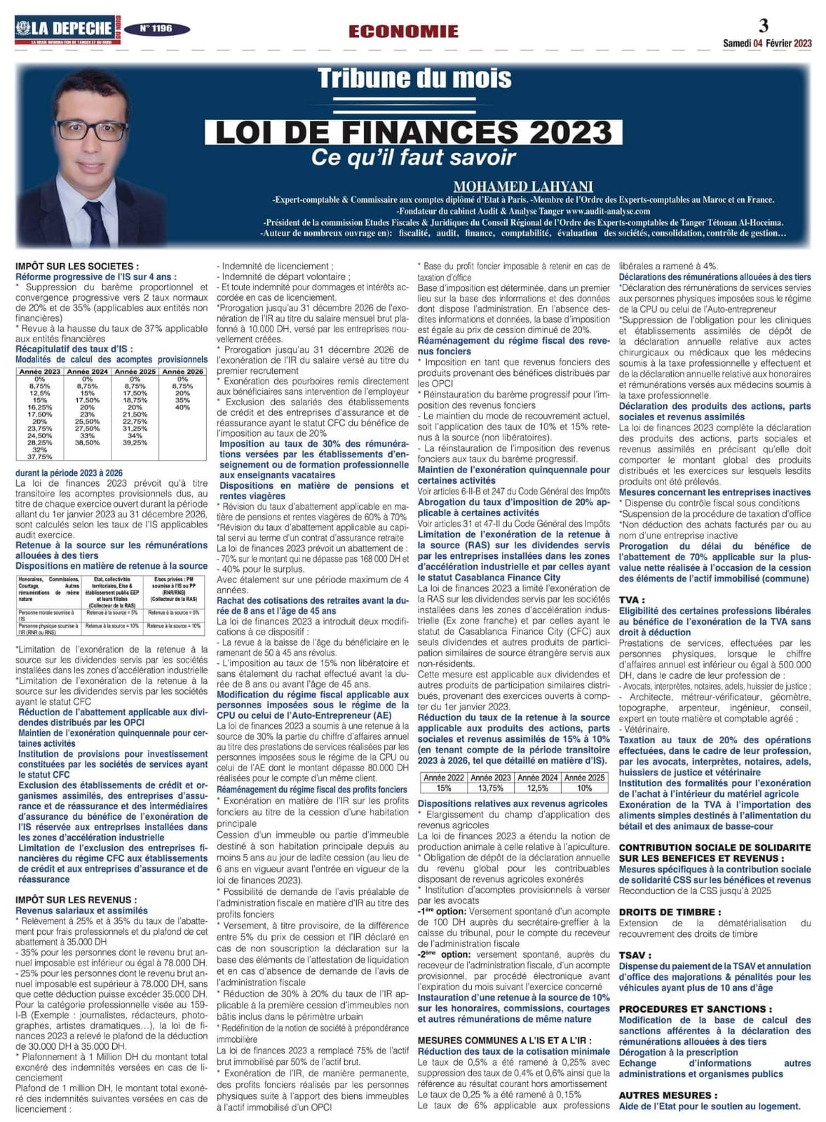 | 06/09/2025 | LA DEPECHE CONTRÔLE FISCAL AU MAROC |