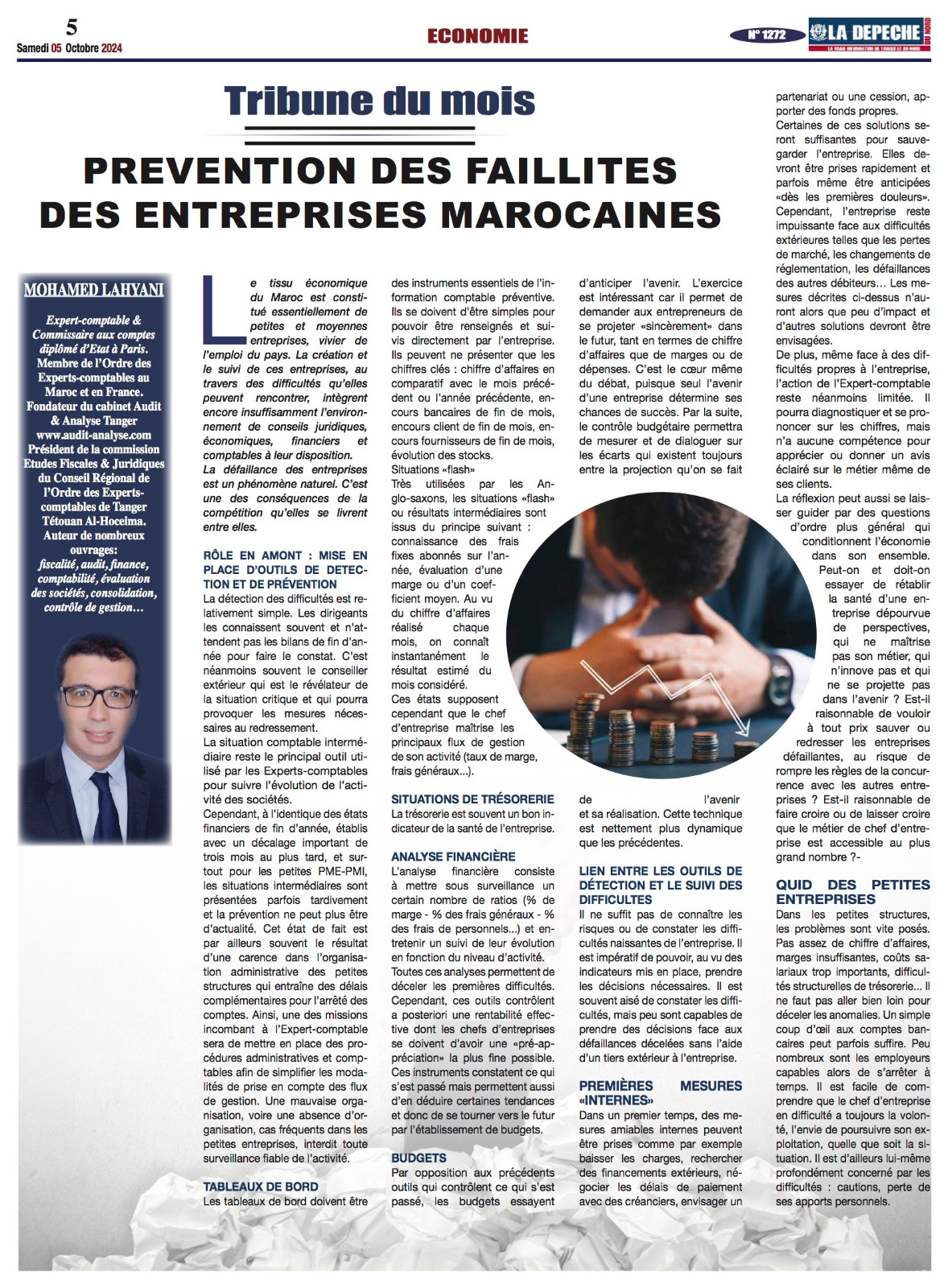 | 05/10/2024 | PREVENTION DES FAILLITES DES ENTREPRISES MAROCAINES |